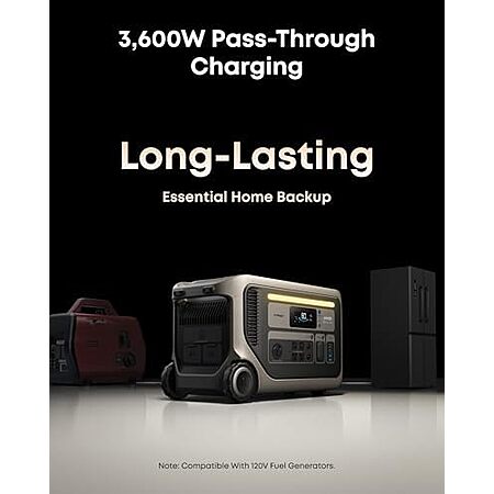Model: Anker SOLIX F3000 Portable Power Station, 3,072Wh, 120/240V Output, 6,000W Recharging, Generators for Home Use, Expandable to 24kWh, Works with Generator, For Power Outages, Camping, RV, Emergencies