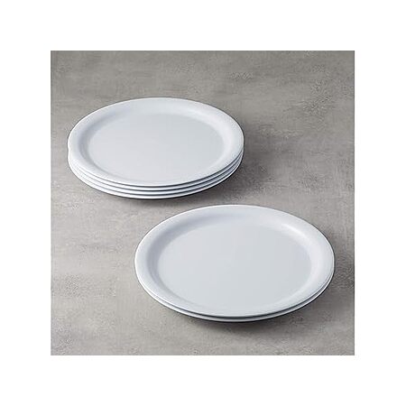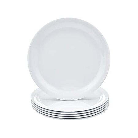 $9.99*:Amazon Basics Melamine (Plastic) Plate, 6 Piece Set, 9 in, White
