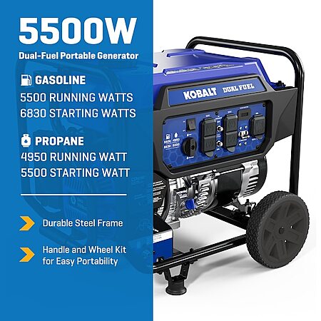 Kobalt 49 State 6830 / 5500-Watt Dual Fuel (Gasoline/Propane) Portable Generator $449 + Free Shipping