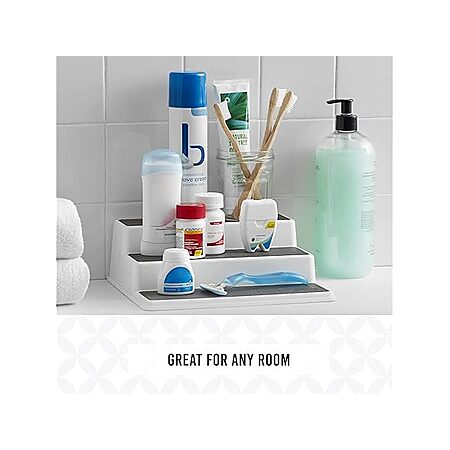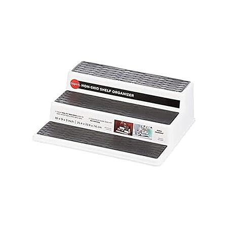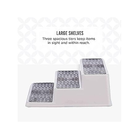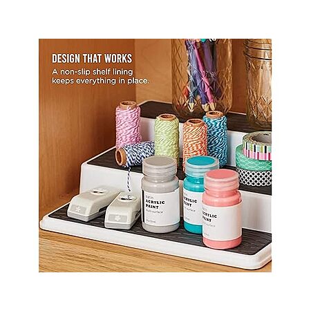 - NON-SLIP SHELVES: The step shelf organizer features a non-slip shelf lining; clean with a damp cloth when needed