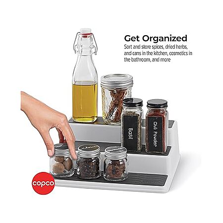 Woot! has Copco 3-Tier Spice Rack Organizer for Cabinet or Pantry, 10-Inch Non-Skid Tiered Shelf, White/Gray Design Holds Spice Jars, Cans, and Bottles on sale for $5.99. Shipping is free w/ Prime. Otherwise shipping is $6.