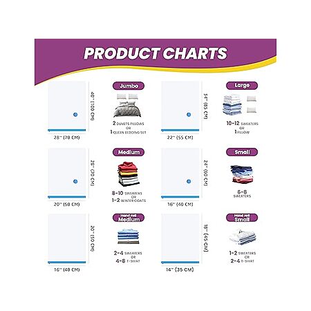 - Versatility: Available in various sizes, vacuum storage bags are perfect for storing clothes, bedding, towels, and more, making them useful for home organization, travel, and seasonal storage.