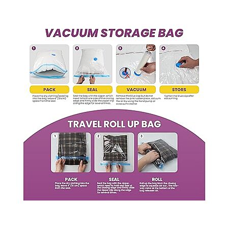 - User-Friendly: Featuring a one-way valve and a double-zip seal, these bags are easy to use. You can quickly remove air with a vacuum cleaner or hand pump, ensuring a tight, secure seal.