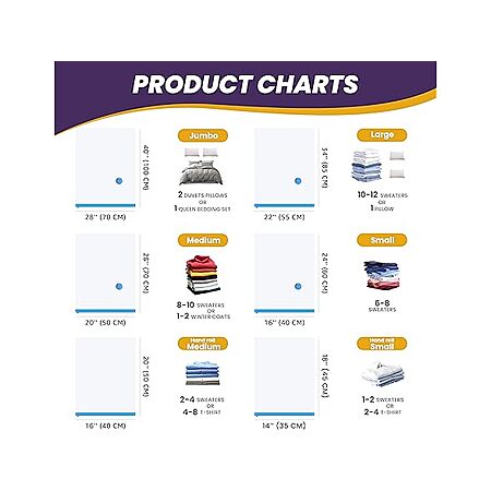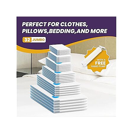 Woot! has YSSOA 32 Pack Vacuum Storage Bags, Space Saver Bags with Hand Pump, Vacuum Seal Bags for Clothing, Comforters, Blankets, Bedding, Pillows (5 Jumbo/5 Large/6 Medium/6 Small/5 Roll M/5 Roll S) on sale for $14.99. Shipping is free w/ Prime. Otherwise shipping is $6.