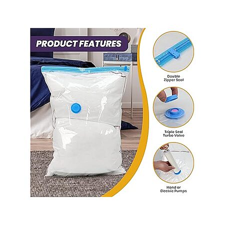 - Save 80% Space: Compress comforters, blankets, clothes, pillows, bedding, and more to free up storage space.