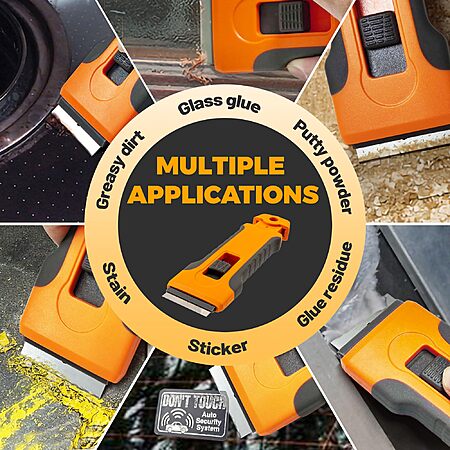 - The scraper does not scratch surfaces, making it a good choice for removing sticky labels without damaging the glass.