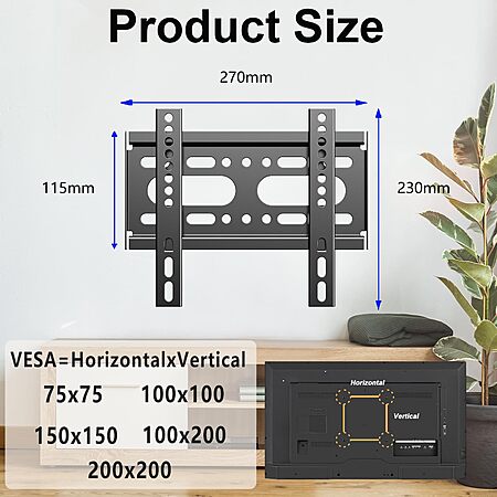 GLWIXY Fixed TV Wall Mount for 14-42" Flat Screen TVs, Small Wall Mount TV Bracket fit 19 24 28 32 35 39 40 inch, VESA Up to 200x200mm 55lbs Max Load $7.98