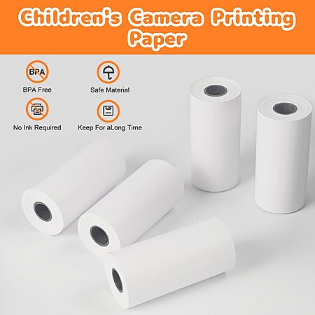 Product Description from Amazon- 【Inkless Instant Thermal Paper】 This children's instant camera refill printing paper is made of high-quality, non-toxic, environmentally friendly paper, which can print clearly without ink or toner. It does not contain any harmful ingredients, safe, durable, easy to tear, simple, fast and efficient printing.