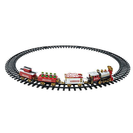 Festive Components: Includes an engine car, candy car, animated elves car, caboose, 8 track sections forming a 29" diameter, 8 support struts, and a tree clamp.