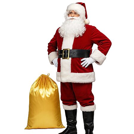 Potalay Men's Deluxe Santa Suit 11pc. Christmas Adult Santa Claus Costume (Medium) on sale for