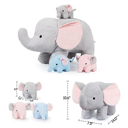 4-pc Weigedu Elephant Family Plush Toy Set w/ Zipper Storage (Grey, Blue, Pink) for