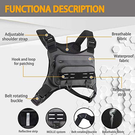 FLYDWV Breathable Chest Bag w/ Pockets & Safety Strips (Grey) $12.45 + Free Shipping w/ Prime or on $35+