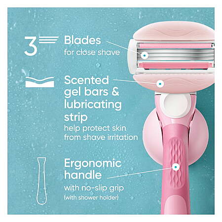 Model: Venus ComfortGlide White Tea Razor for Women, 3 blades, Manual Razor, Handle and 2 Blade Refills, Pink