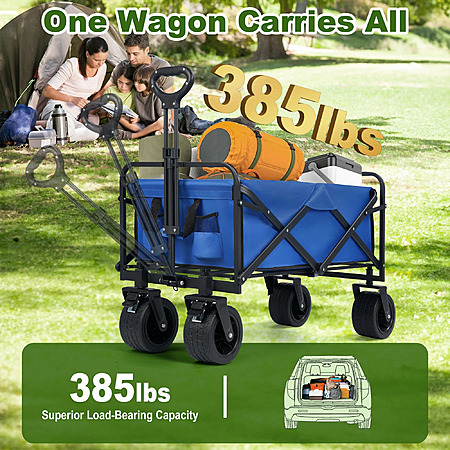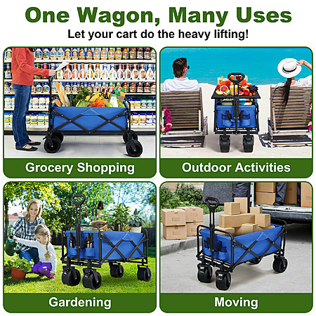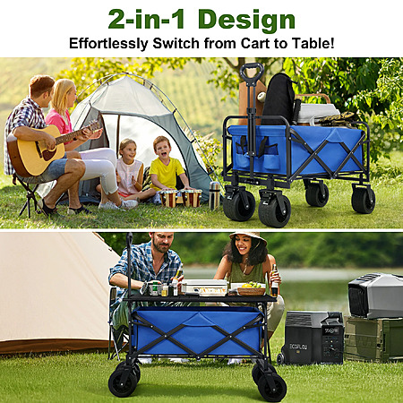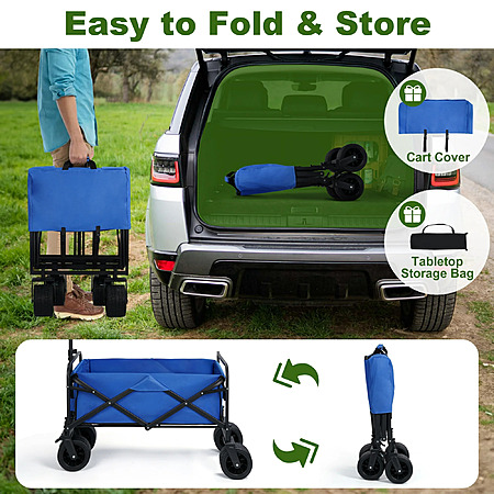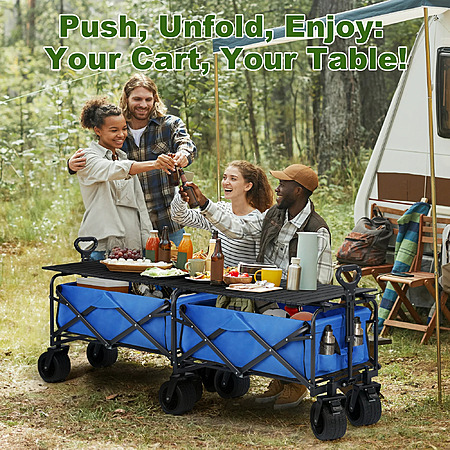 Firstness Collapsible Wagon Cart with Tabletop, 385 lbs Heavy Duty Utility Garden Wagon for Camping, Beach, Picnic, Sports, Shopping & Grocery, Blue $49.99