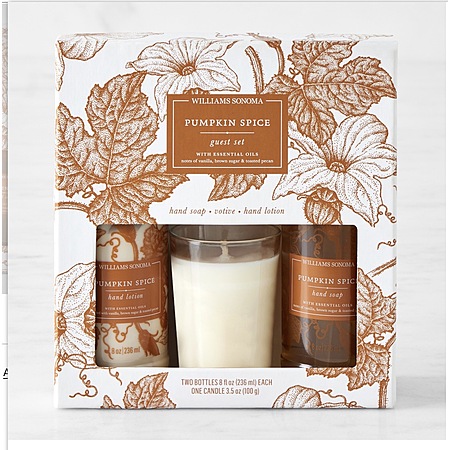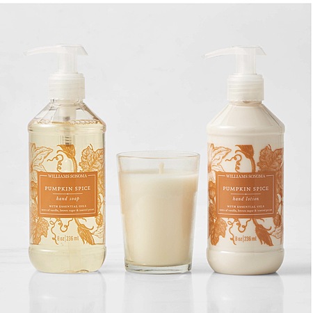 Our limited-edition essential-oil scent is inspired by the sweet, spicy aroma of home-baked pumpkin bread. We've combined the rich fragrances of fresh pumpkin, butter and brown sugar, highlighting the blend with notes of creamy vanilla, toasted pecans and warm spices. A great gift, this limited-edition Pumpkin Spice set offers a warm welcome for seasonal guests.