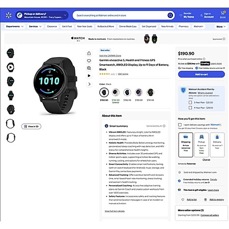 Garmin vívoactive 5, Health and Fitness GPS Smartwatch, AMOLED Display, Up to 11 Days of Battery, Black $190.99