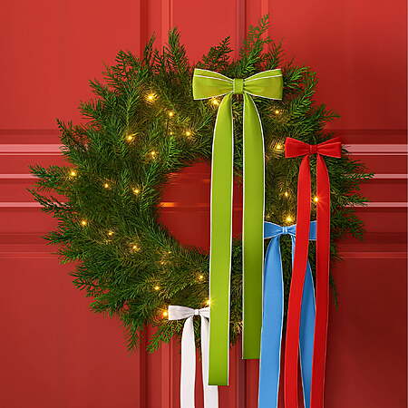 24" Holiday Time Greenery Christmas Wreath with Bows or Square Sequin Wreath $8.97 + Free S&H w/ Walmart+ or on $35+