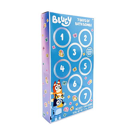 The Bluey Bath Bomb Advent Calendar brings a week of playful fun to bath time! With 7 surprise bath bombs, each day becomes an exciting and relaxing experience that kids will love. Includes 7 bath bombs for a week of surprise fun Bluey-themed packaging adds a cheerful and playful touch Gentle formulas designed for safe, everyday use Perfect for gifting or making bath time extra special