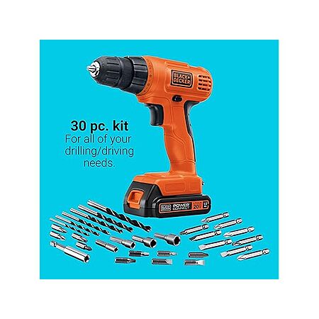 BLACK+DECKER 20V MAX Cordless Drill Driver Kit (LD120VA, 30-Piece Set) $20