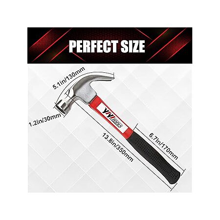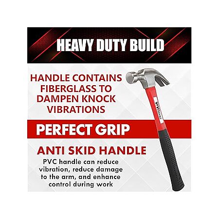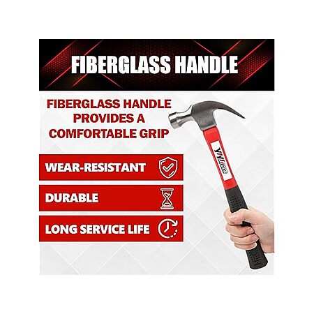 YIYITOOLS Claw Hammer, 16oz Fiberglass Handle $5