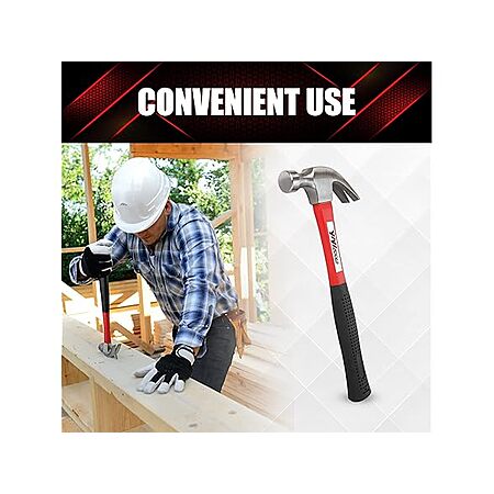 YIYITOOLS Claw Hammer, 16oz Fiberglass Handle