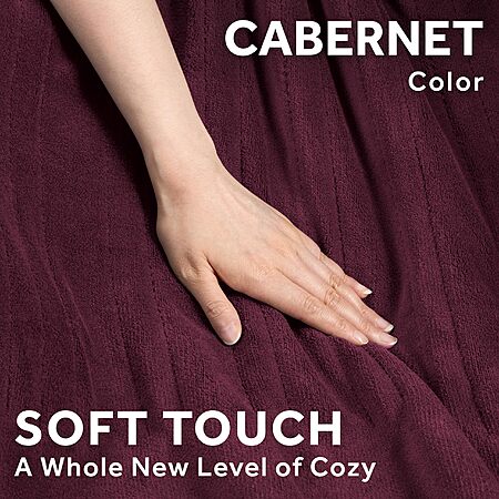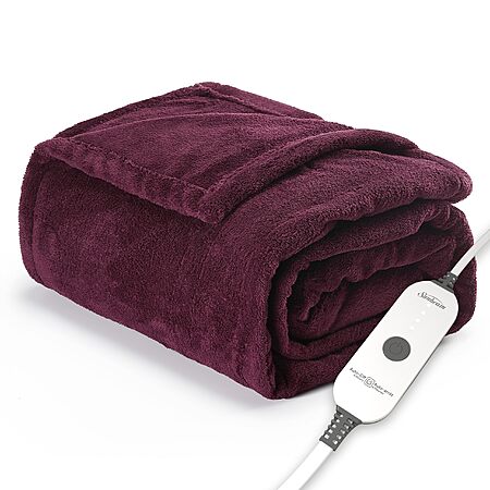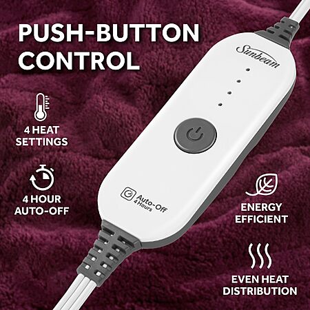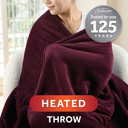 Sunbeam Electric Throw Royal Luxe Microplush Heated Blanket, 4 Heat Settings, 4-Hour Auto Shut-Off, Cabernet Red Color, 50" x 60"- $25.70