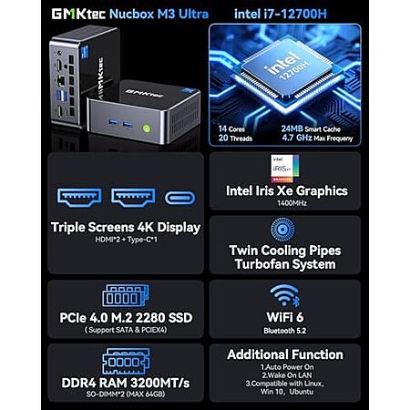 [Prime] $429.99 | GMKtec M3 Ultra Mini PC with Intel Core i7 12700H, 16GB DDR4 RAM+512GB NVMe SSD at Amazon