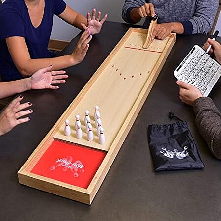 $36.48 | GoSports Mini Wooden Tabletop Bowling Game Set at Amazon