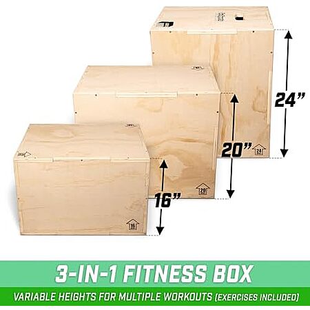 $52.22 | GoSports Fitness 3-in-1 Plyo Jump Box (Standard - 16 Inch x 20" x 24 Inch) at Amazon