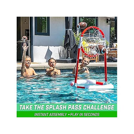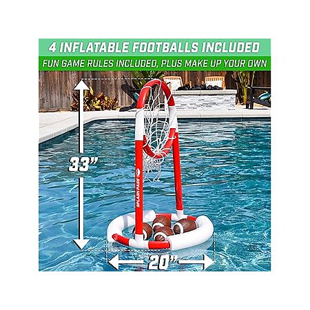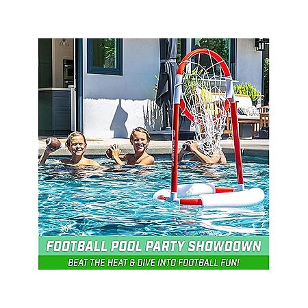 $14.99*:GoSports Splash Pass Floating Pool Football Game Includes Hoop, 4 Footballs and Pump