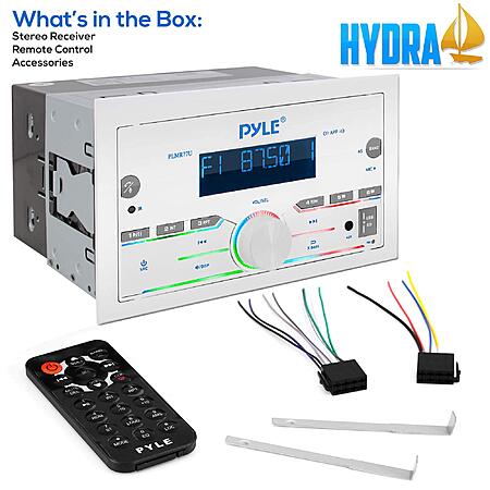 woot! has Pyle Marine Stereo, Bluetooth, USB/SD, 300W Double DIN Boat Radio Receiver, LCD Display, Hands-Free Calling, AUX, MP3, AM/FM Radio, Remote Control, PLMR77U, White, Built-in Microphone, 4x75W on sale for $26.99. Shipping is free with Prime or on $35+ orders.
