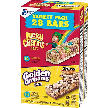 Amazon [amazon.com] has 28-Count Lucky Charms and Golden Grahams Breakfast Bar Variety Pack for $7.65 - 5% when you check out via Subscribe & Save = $7.27. Shipping is free with Prime or on $35+