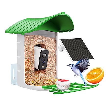 Xitang Store via Amazon.com has Bird Feeder with Camera, HD Birdwatching Camera with 1 Year Trial AI Identify, 4 DIY Add-ons, Smart Birds Cam with Solar Panel for Outdoor, Auto Record Videos, Gift for Bird Lover on sale for $35. Save 35% at checkout.