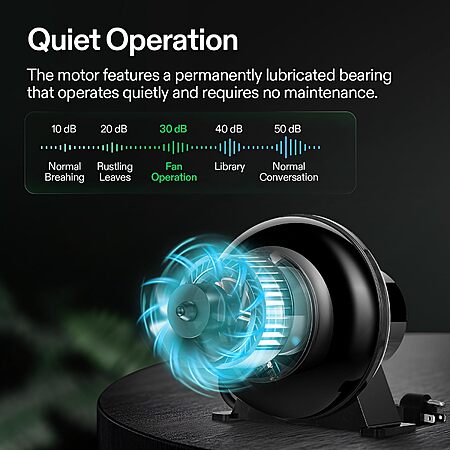 - Quiet Operation: Fitted with a flow deflector that concentrates the fan stream and cuts turbulent kinetic energy to reduce sound output to just 30 dB, which does not have any harm to your health and will not disturb your work