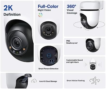 Model: Tapo 2K Outdoor Wired Pan/Tilt Security Wi-Fi Camera, 360° View, Motion Tracking, Works w/Alexa & Google Home, Color Night Vision, Free AI Detection, Cloud & SD Card Storage(up to 512GB), Tapo C510W