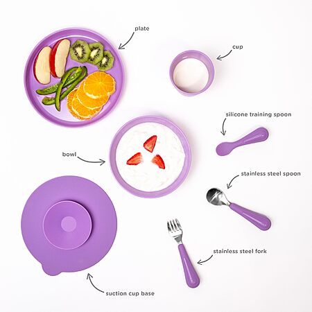Amazon[amazon.com] has 7-Piece Ubbi Toddler Feeding Set w/ Plate, Bowl, Cup & Stainless Steel Utensils (Purple) for $8.50. Shipping is free w/ Prime or on $35+.
