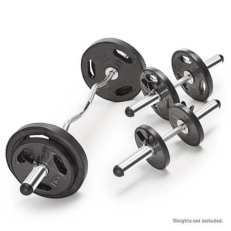 Combo curl bar and dumbbell handles and 6 weight clips for use with 2" weight plates $48 FS