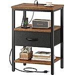 SUPERJARE Nightstand w/Charging Station, Bed Side Table w/Adjustable Fabric Drawer, Night Stand for Bedroom, Rustic Brown and Black $29.98