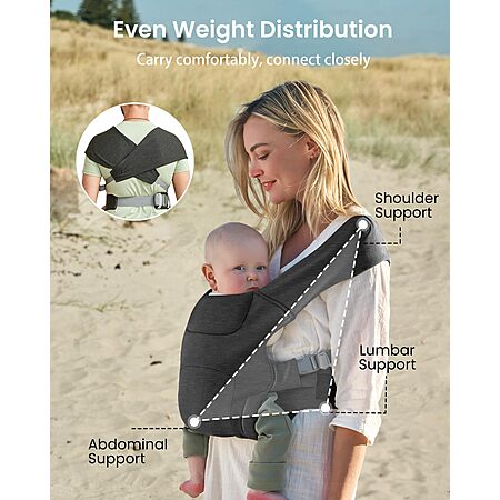 Kidira Ergonomic Cross-Back Wrap Baby Carrier (Deep Grey) $9.49 + Free Shipping w/ Prime or on $35+