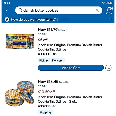 Jacobsens Original Premium Danish Butter Cookies - $11.46, $11.76, & $18.46 @ Sams Club
