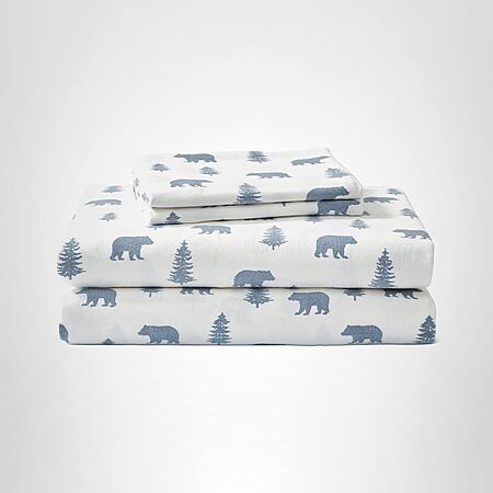 Eddie Bauer - Flannel Sheets King Size, Anti-Pilling & Wrinkle Resistant Cotton (Bears and Trees Blue) $45.38