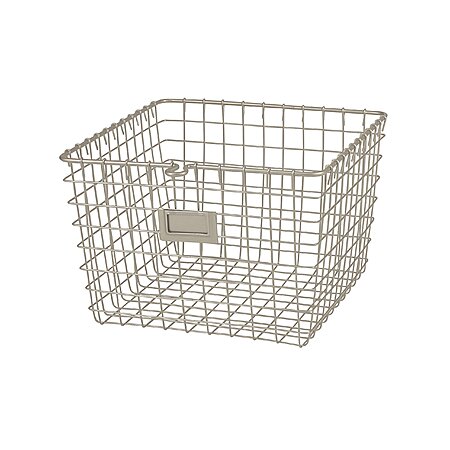 - STYLISH SATIN NICKEL FINISH: This medium satin nickel wire basket with label plate features a refined brushed nickel finish that pairs beautifully with granite countertops shaker style cabinets or elegant bathroom fixtures