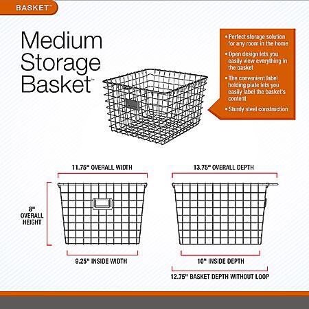 Features:- PERFECT MEDIUM SIZE: Rectangle wire basket measures 12.5 inches L x 11.25 inches W x 8 inches H providing ideal capacity for medium sized items while fitting standard cabinet shelves and storage spaces