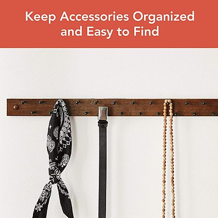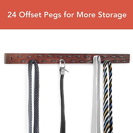 Features:- STYLISH ORGANIZATION: This wood peg rack for wall transforms cluttered closets into organized spaces with 24 strategically staggered pegs that hold ties belts scarves jewelry and accessories for easy viewing and access