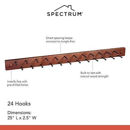 Spectrum Diversified Wooden Closet Wall Mount Storage Rack, 24 Peg Tie, Belt, Scarf and Jewelry Organizer One Coffee on sale for
