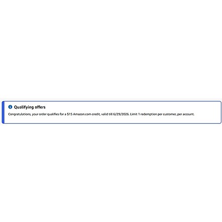 You will received $15 Amazon Credit for Spending $50+ (This will be noted on the final checkout page as shown in the images). Limit 1 redemption per customer, per account.