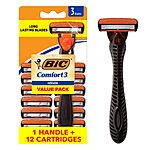 BIC Comfort 3 Refillable Three-Blade Razor for Men, Sensitive Skin Razor For a Comfortable Shave, 1 Handle and 12 Cartridges, 13 Piece Razor Set $8.42