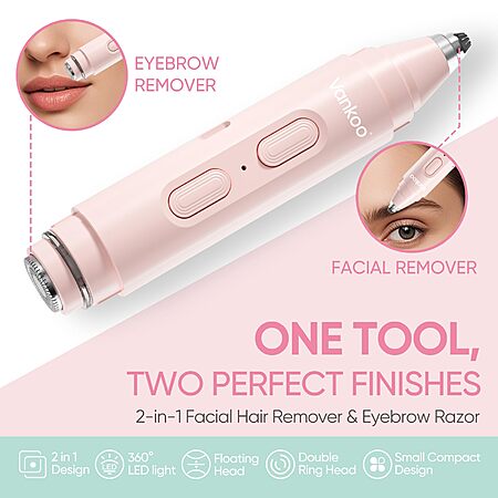 Vankoo Facial Hair Remover & Eyebrow Trimmer - 2 in 1 Eyebrow & Face Shaver for Women - Rechargeable Face Razors for Women with Built-in LED Lights $14.99