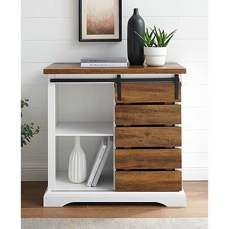 Walker Edison has its Walker Edison Alba Accent Farmhouse Door Cabinet (Solid White/Rustic Oak) for $43. Shipping is free.