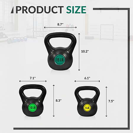 BalanceFrom Wide Grip Kettlebell, Black, 30lb set (5 10 15lbs) - $14.99, 45lb set (10 15 20 lbs)- $17.99